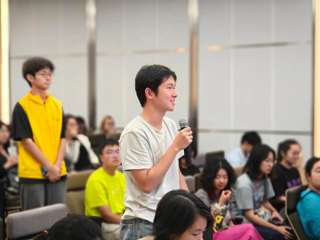 在问答环节,同学们积极提问,华灿工场项目总监刘宇轩逐一予以细致解答,并为每位提问同学赠送了来自台湾的特色伴手礼,体现了两岸文化交流的亲和力与华灿奖推动青年融合的初衷。