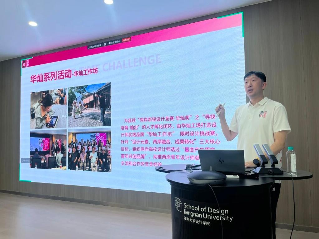 华灿工场项目总监刘宇轩详细介绍了第十届华灿奖的赛事特色和创新亮点。他强调,作为教育部认可的面向两岸及港澳地区的设计类竞赛,华灿奖在第十届这个重要节点上进行了全面升级,不仅优化了赛制流程,更丰富了赛道设置,为青年设计师提供更广阔的展示平台和更完善的孵化支持。