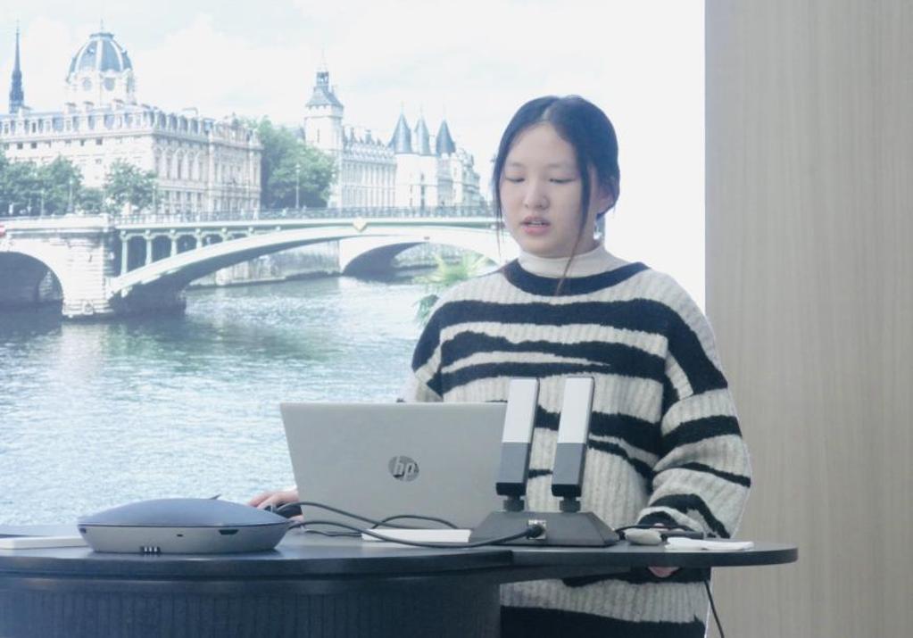 学生分享环节,刘可岩作为江苏省“鲲鹏计划”奖学金参与项目的代表,结合自身在澳门科技大学AI与大数据工程方向的跨学科研学经历,分享了项目申请要求与遴选机制。她表示,跨学科课程深化了她对技术与设计融合的理解,在项目实践、自主学习能力及未来研究方向等方面均收获颇丰。谢语溪作为参与法国巴黎夏庞蒂埃学院访学项目的代表,围绕课程学习、户外写生、摄影实践、工作室参访以及城市文化体验等内容,分享了她在法国的学习收获。她谈到,法国课堂重视讨论与过程表达,这段经历显著提升了她的审美素养、跨文化沟通能力与创作水平。